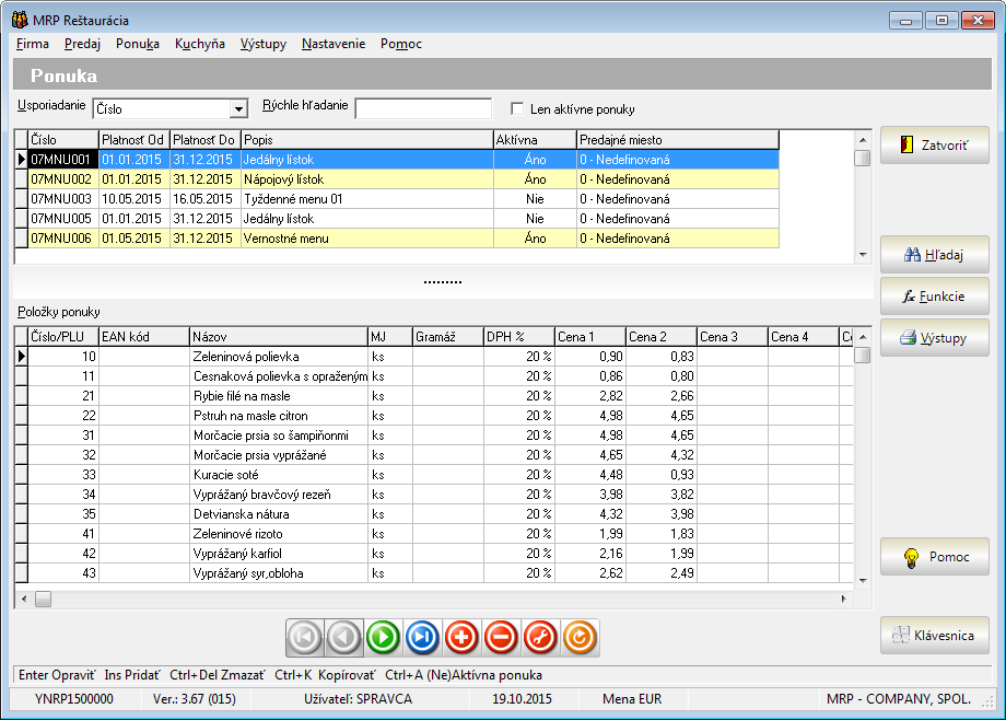 - příprava a tisk jídelních a nápojových lístků (i s obrázky jídel) včetně uvedených alergenů, denní i týdenní jídelní lístky, atd.