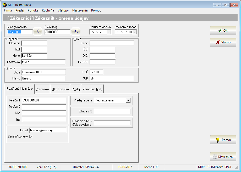 - nastavení prodejních cen jednotlivým zákazníkům, tisk zákaznických věrnostních karet, sledování návštěvnosti i tržeb, statistika s podrobnými přehledy o prodeji za zadané období, výkonnost zaměstnanců, atd.